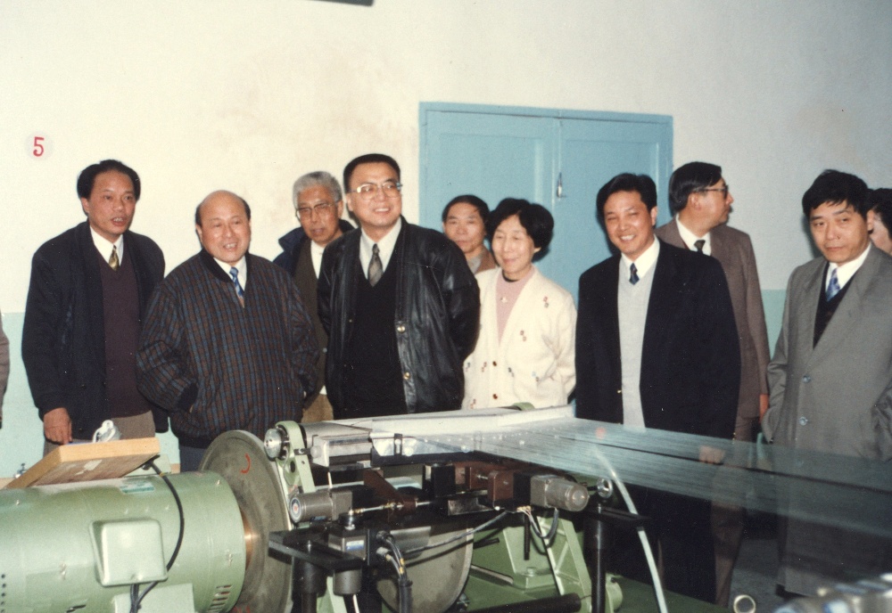 原中共浙江省委常委、杭州市委書記,時任中共嘉興市委書記王國平與省、市領導在浙江宏達經編實業公司車間