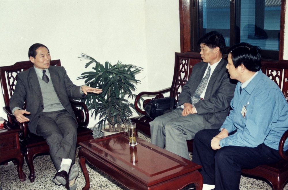 海寧市人大常委會主任(時任中共海寧市常務副市長)徐輝陪同前往考察的香港實業家查濟民先生在宏達經編實業公司