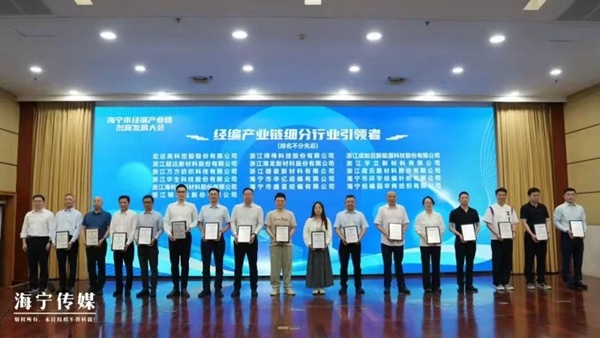 會(huì)上,發(fā)布了經(jīng)編行業(yè)引領(lǐng)者、創(chuàng)新企業(yè)和創(chuàng)新產(chǎn)品名單,宏達(dá)高科榮獲經(jīng)編產(chǎn)業(yè)鏈(汽車內(nèi)飾布)細(xì)分行業(yè)引領(lǐng)者和第一批經(jīng)遍產(chǎn)業(yè)鏈創(chuàng)新產(chǎn)品兩個(gè)獎(jiǎng)項(xiàng)。公司總經(jīng)理許建舟代表公司上臺領(lǐng)獎(jiǎng)。