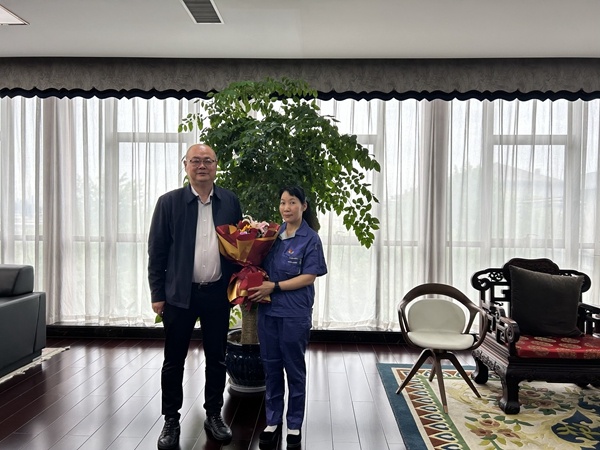 在第135個“國際勞動節”來臨之際,4月27日上午,許村鎮黨委書記許新峰蒞臨宏達高科慰問全國勞動模范、宏達高科董事長沈國甫和浙江省勞動模范、宏達織造部助理趙巧娟,傳遞了黨和政府對勞模的崇高敬意和誠摯關懷。