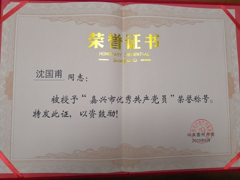 沈國甫董事長獲評“嘉興市優秀共產黨員”